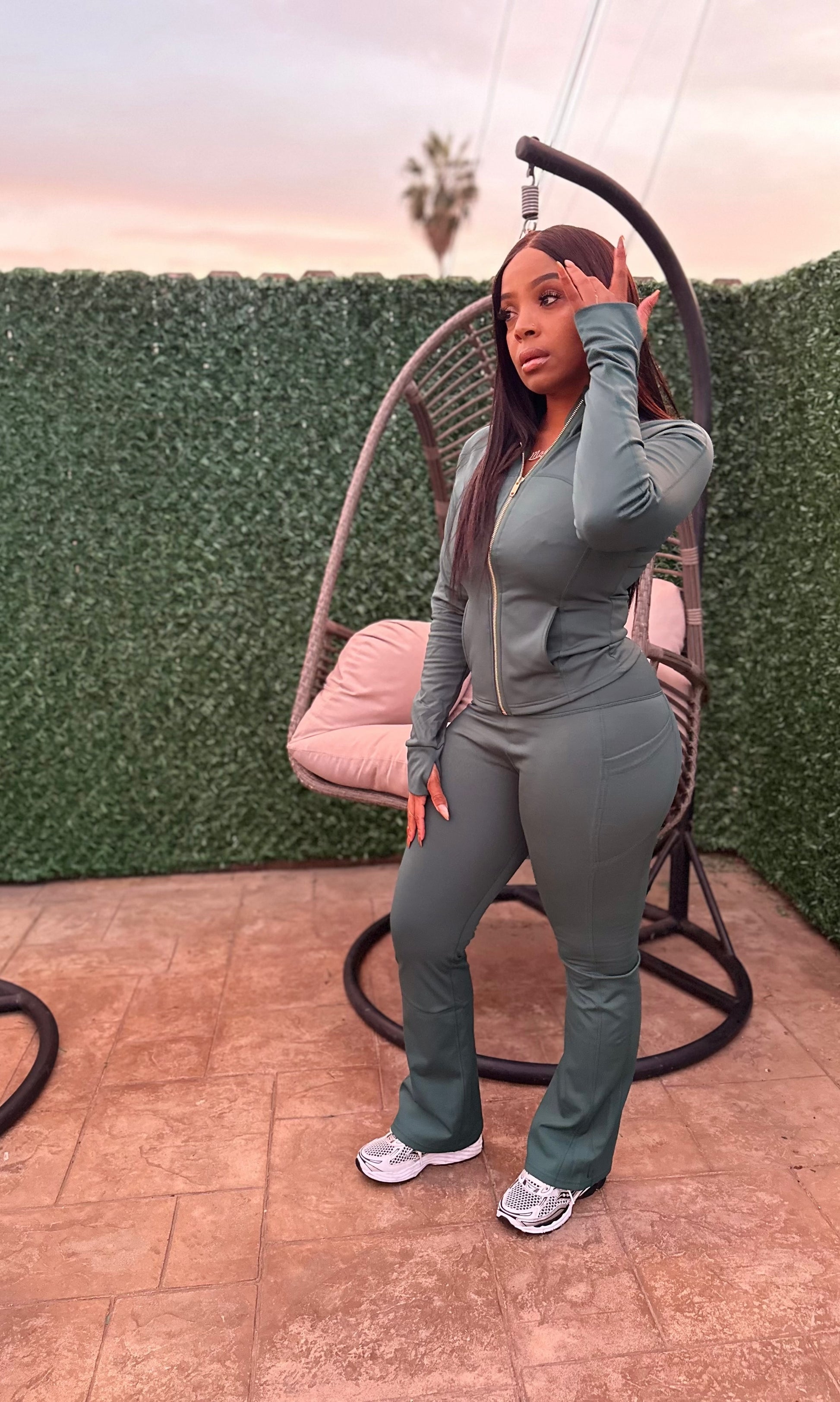 Dark green pants set with gold zipper